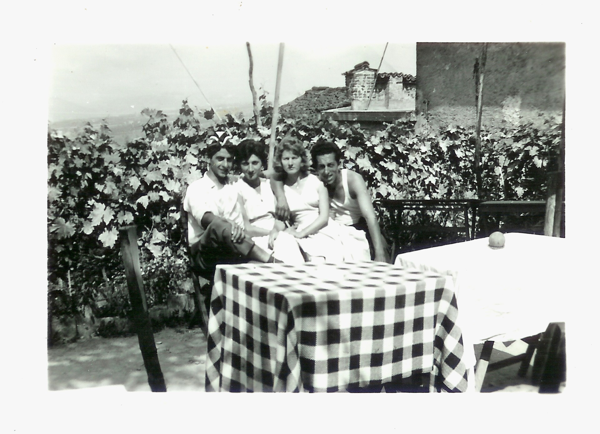 Da sinistra: Sergio Moret, Maria Mogni, Fausta Casanova, Giuseppino Casanova. La foto è stata scattata di fronte alla casa di Giuseppino Casanova.