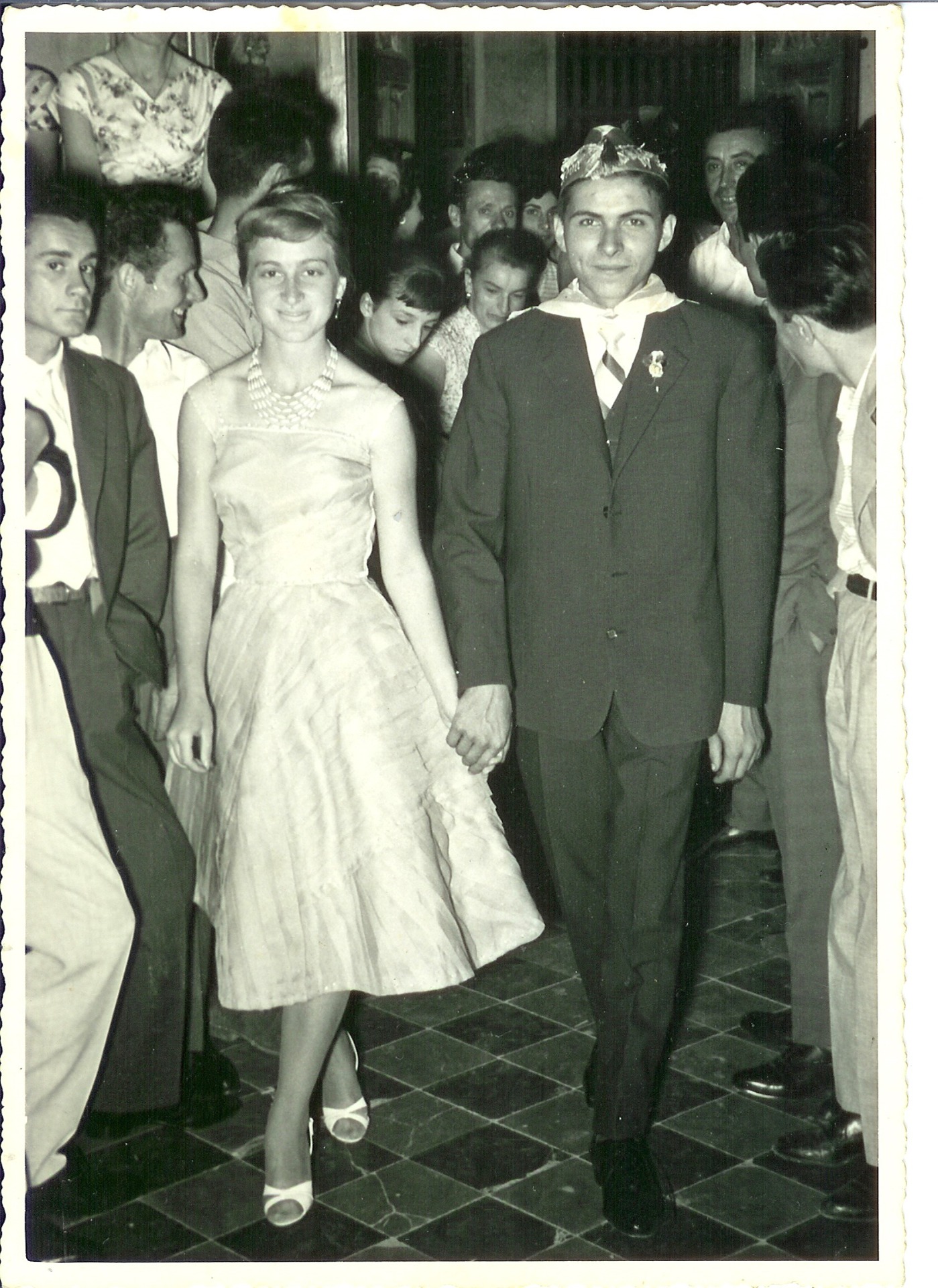 1959: il ballo dei coscritti della classe 1939. Rita Mogni e Luigi (Gigetto) Chiesa (dall'archivio fotografico di Giovanni Chiesa).
