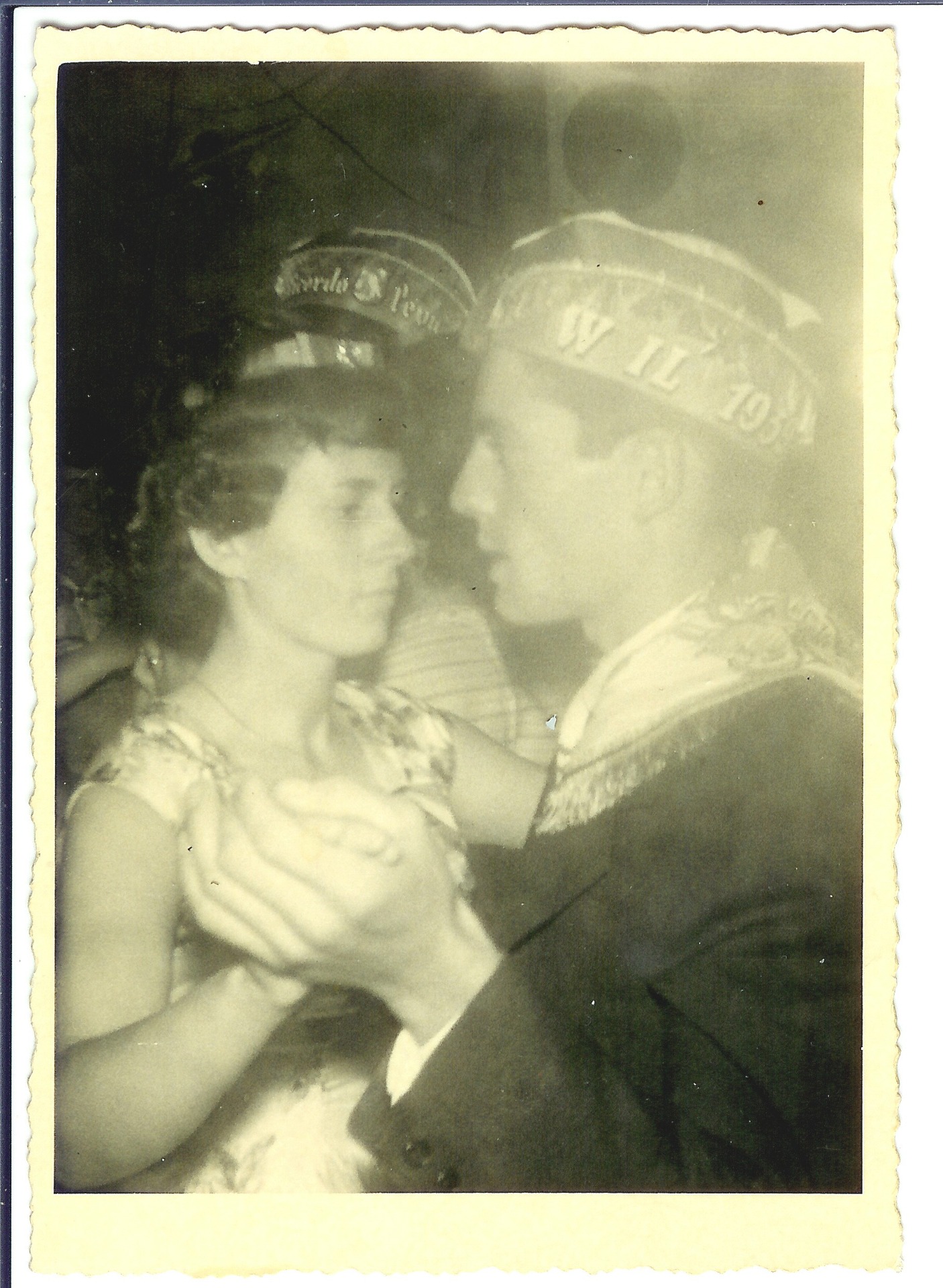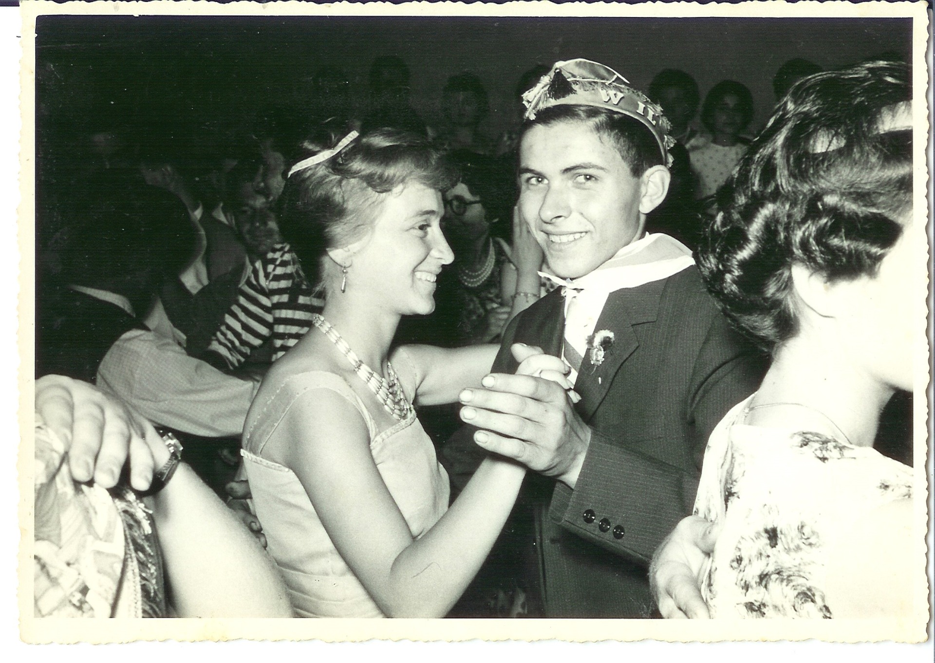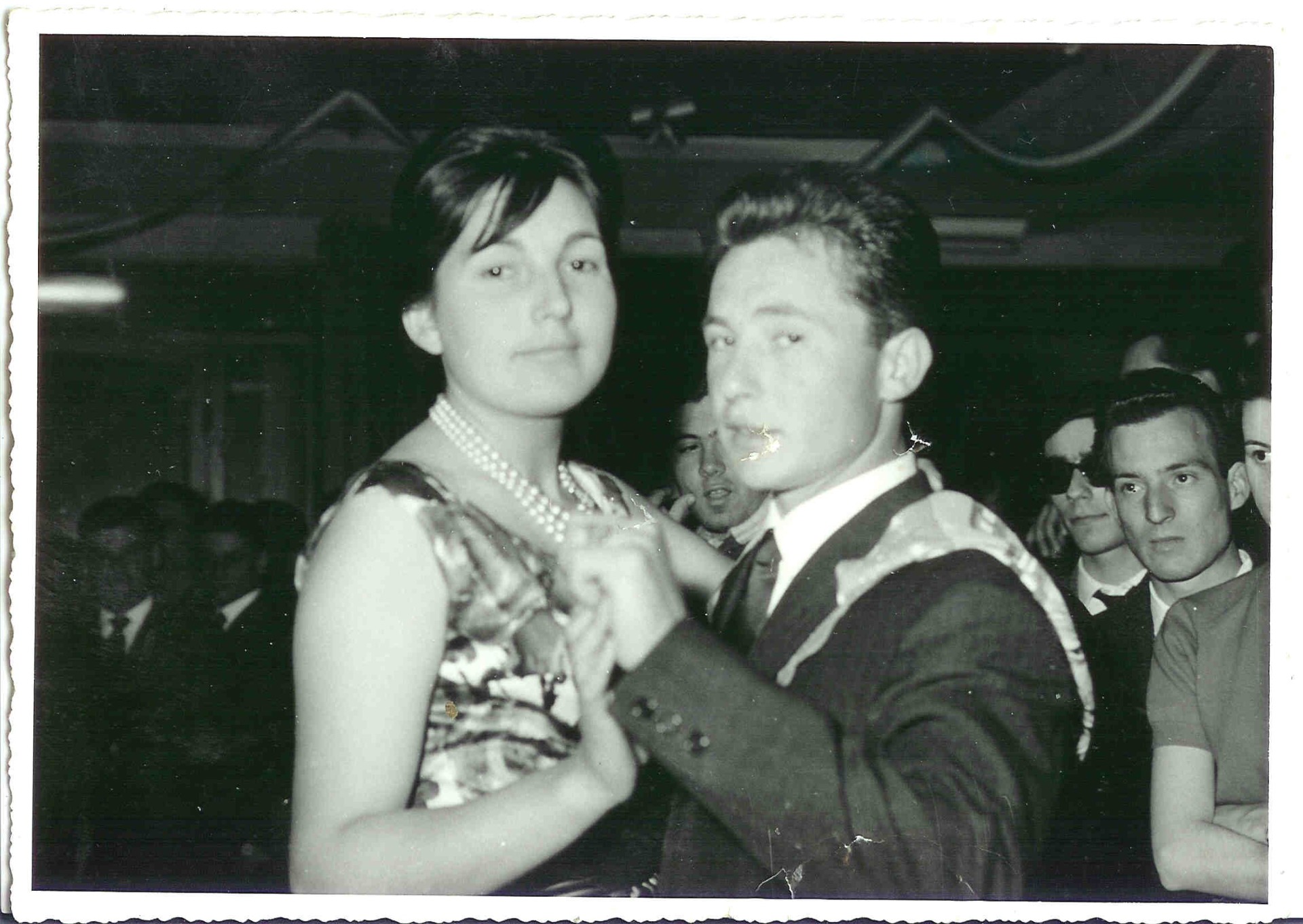 1959: il ballo dei coscritti della classe 1939. Maria Grazia Zuccarelli e Giovanni (Nino) Sedano che ballano insieme. Sullo sfondo: Rita Mogni (dall'archivio fotografico di Wanda Sedano).