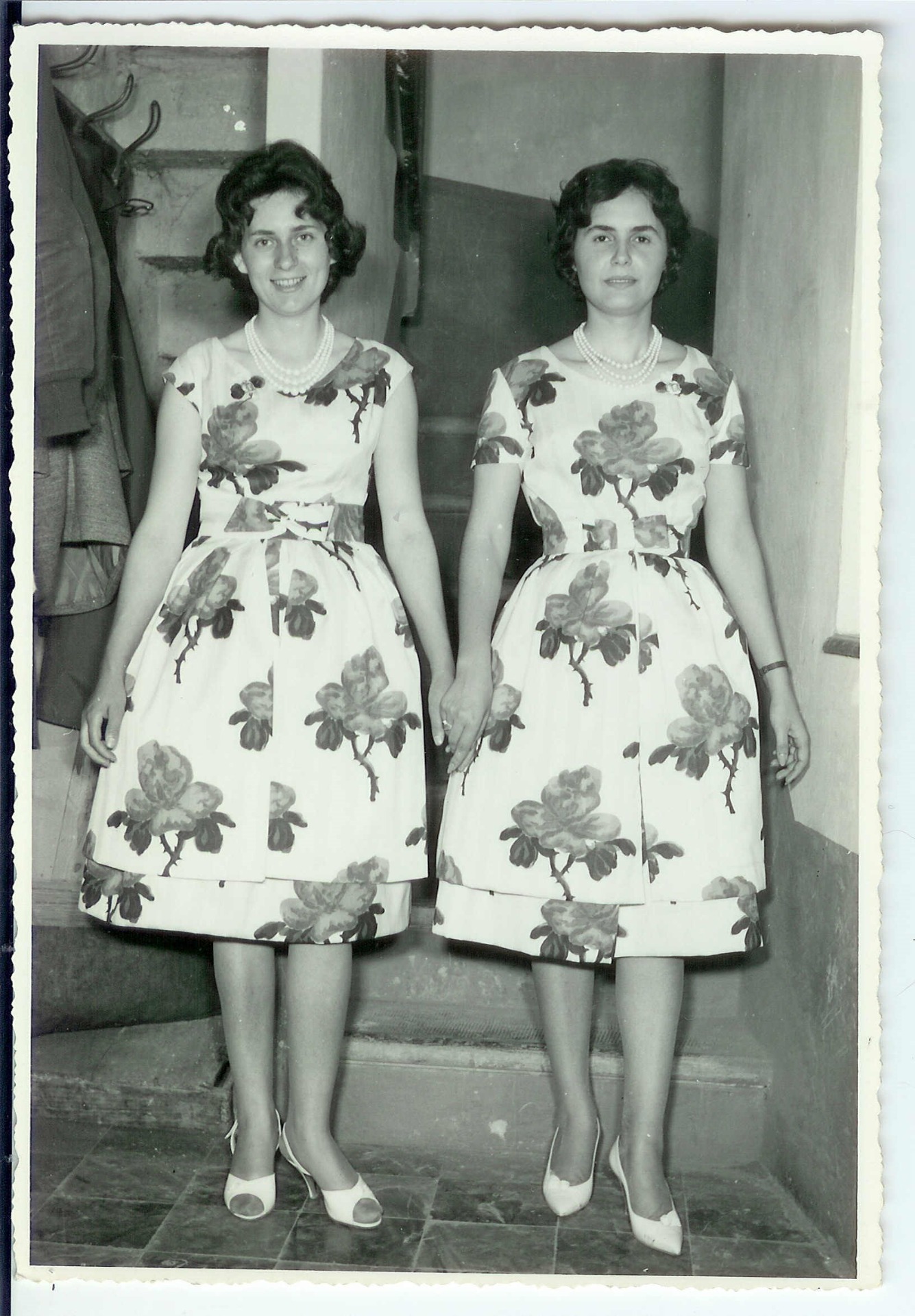 1960: i coscritti classe 1940 sulle scale della sala sociale; da sinistra: Rita Mogni, Ornella Mogni (dall'archivio fotografico di Ornella Mogni).
